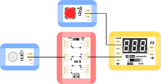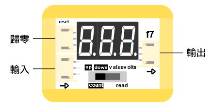 元件清單: 按鈕模組;計數模組;主控板:1組輸入/輸出端。